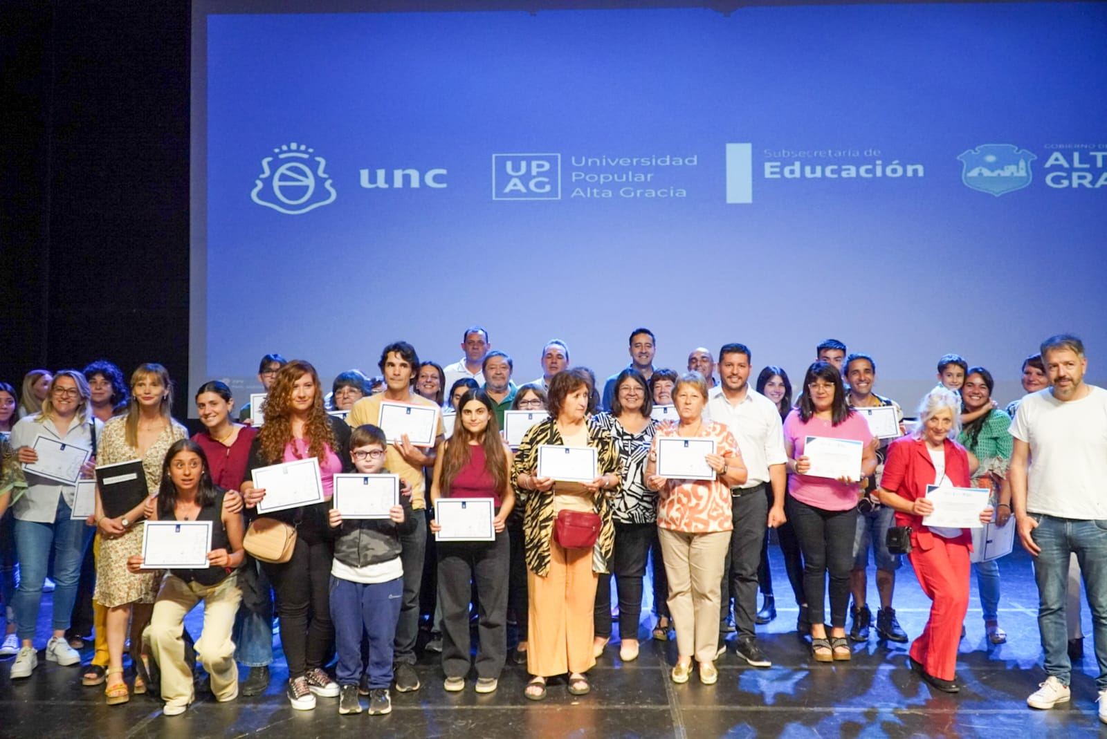 En la tarde del lunes 25 de noviembre se llevó adelante la entrega de certificados a estudiantes, voluntarios y capacitadores de los distintos programas enmarcados en la “Universidad Popular de Alta Gracia”, una iniciativa conjunta entre la Municipalidad de Alta Gracia y la Universidad Nacional de Córdoba, a través del Programa de Universidades Populares de la Secretaría de Extensión Universitaria de la casa de altos estudios.