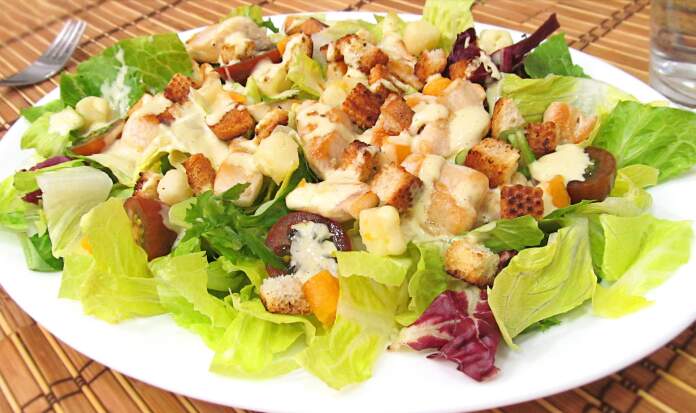 Recetas Argentinas- A «nada» de las fiestas de fin de año y el calor en aumento, es momento de empezar a priorizar las verduras y frutas. No sólo porque son livianas a al hora de digerir sino además porque aportan el líquido que vamos perdiendo durante los días calurosos. La ensalada César se puede preparar con pollo, anchoas, camarones o jamón. Aquí una variante con panceta.