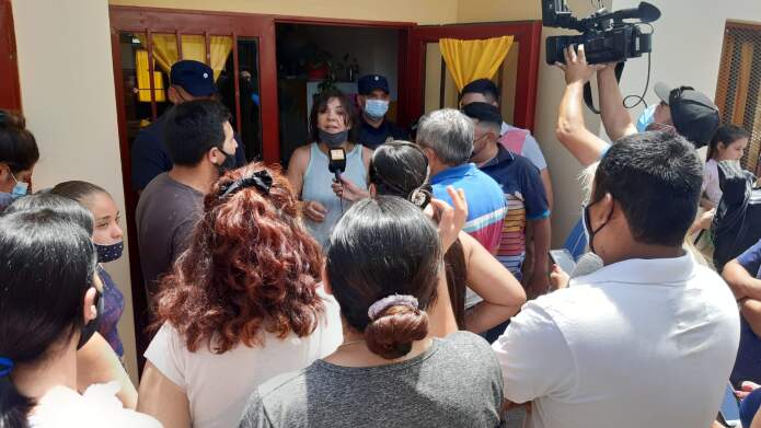 Algunos docentes debieron salir con protección policial. Por la tarde los vecinos y vecinas cortaron el tránsito en la Ruta provincial 5. Luego se dirigieron al domicilio del intendente José Becker