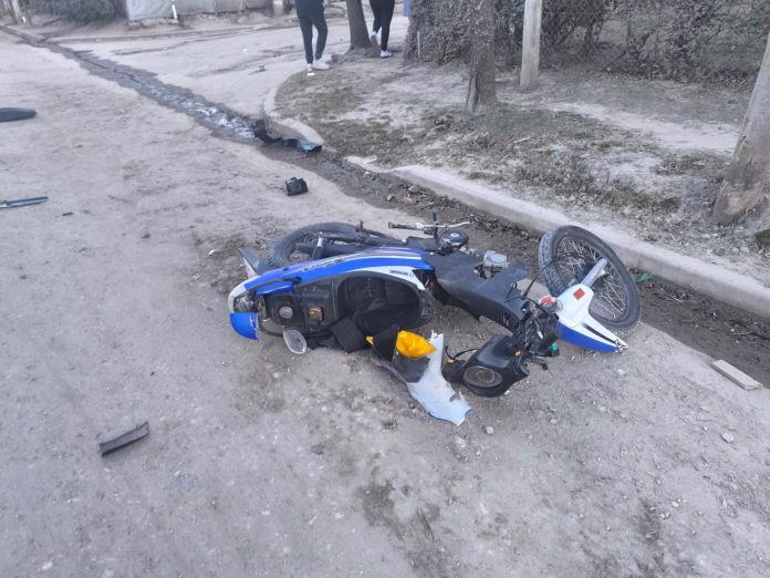 En la mañana de este viernes, en la intersección de calles Los Algarrobos y Los Piquillines, personal policial intervino en un accidente de tránsito que involucró a una motocicleta y un automóvil Volkswagen Voyage.