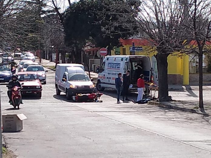 Un utilitario colisionó este domingo contra una moto. El conductor del vehículo menor, cayó sobre la vereda con lesiones en la espalda.
