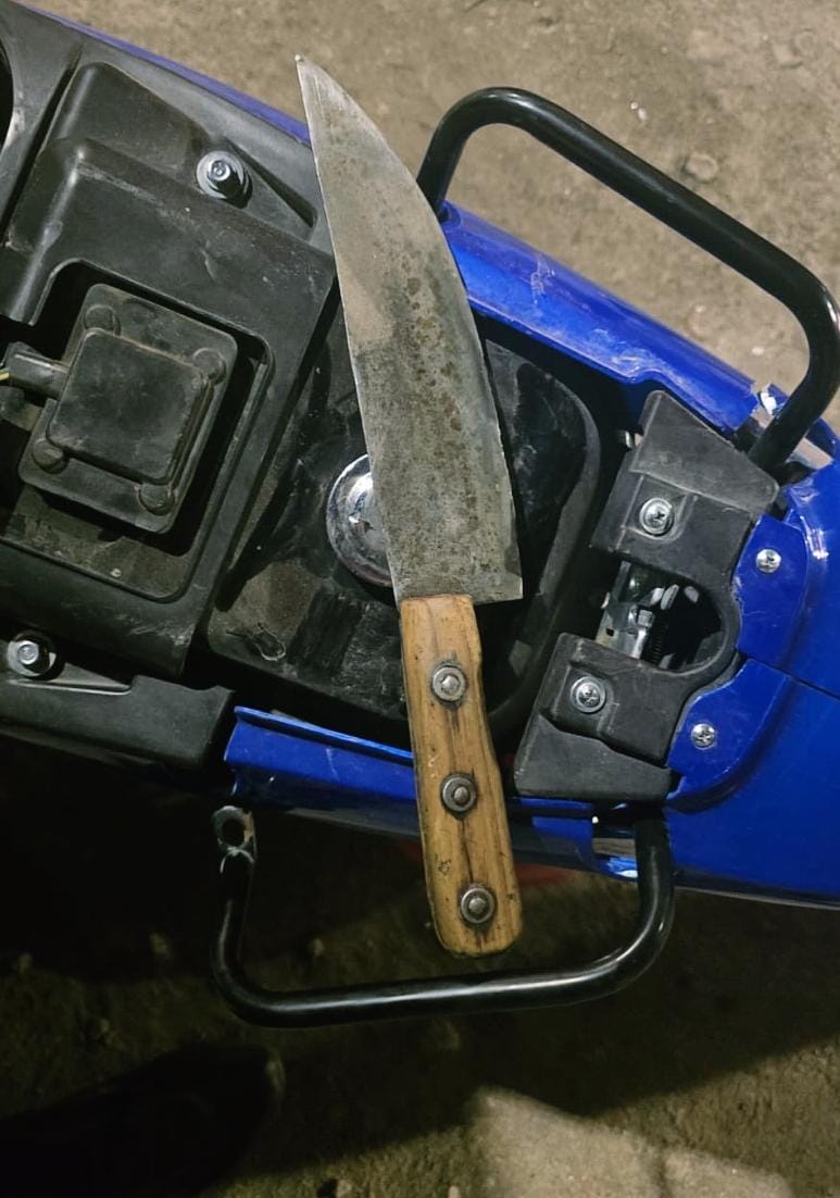 En un operativo posterior, la Policía localizó y secuestró la motocicleta en la intersección de calles Deán Funes y avenida Sarmiento. En la baulera del rodado también se halló una cuchilla, que fue incautada como elemento probatorio.