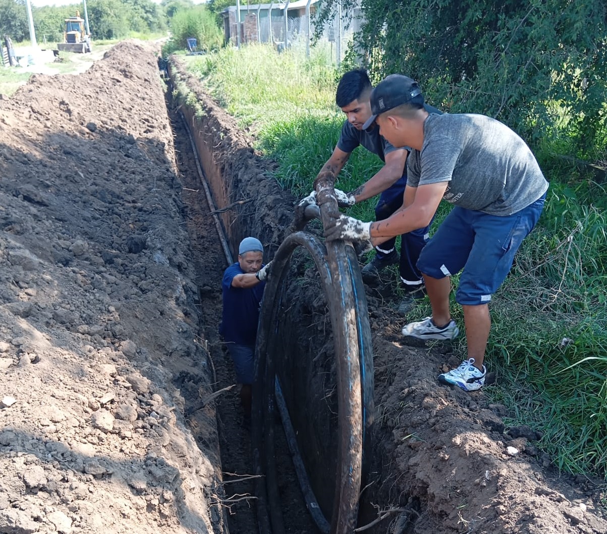 Por otra parte, se está realizando el tendido de 90 metros de cañería de diámetro 75mm en calle Los Benteveos de Bº La Perla, obra que también permitirá la conexión de diez servicios domiciliarios.
