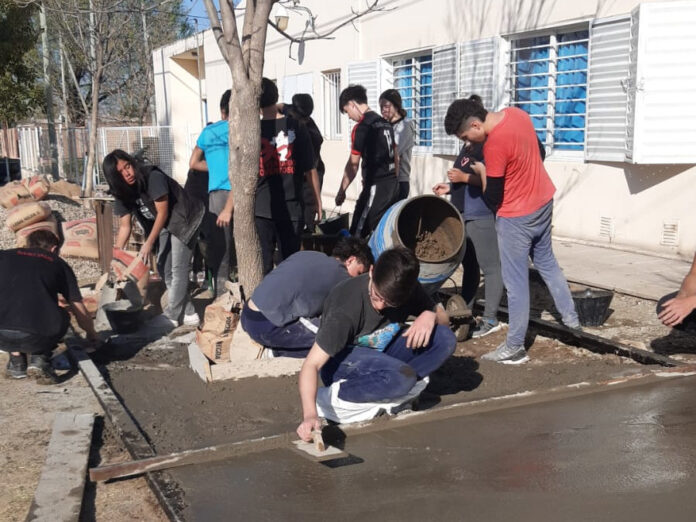 «Formación técnica y la formación humana, conocimientos y solidaridad», son los pilares de el Instituto El Obraje, una de las escuelas privadas más emblemáticas de la ciudad. A través de un proyecto que nació antes de la pandemia, los alumnos de 4º, 5º y 6º año se turnaron para llevar adelante una labor solidaria: construir la vereda de la escuela San Vicente de Paul.
