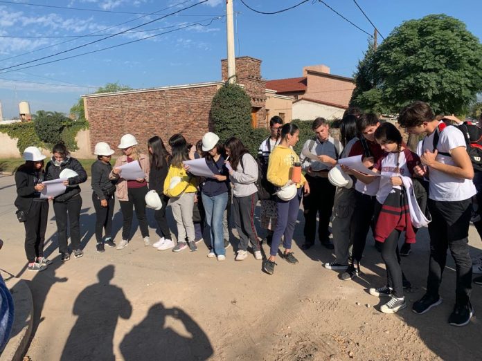 Estudiantes del Instituto de Enseñanza Privado El Obraje realizaron una visita a la obra de hormigonado y cordón cuneta que se está llevando a cabo, en el marco del Plan Vial Integral del Gobierno de Alta Gracia, en la calle Concordia de Barrios Cafferata y Residencial el Crucero.
