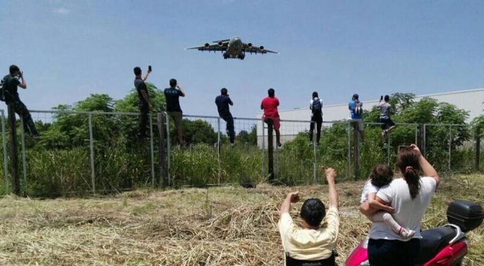 VIDEO: Imponente aterrizaje del C-17 Globemaster en pista 36. pic.twitter.com/HecZe56aXd