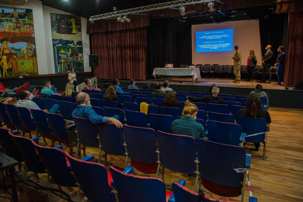 Los expositores del COE nº 8 fueron: el Capitán del Ejército Francisco Pérez Arrieu, la Directora del Hospital Regional Arturo Illia Dra. Mariana Garay, y el Coordinador del COE nº 8 Facundo Barrabino.