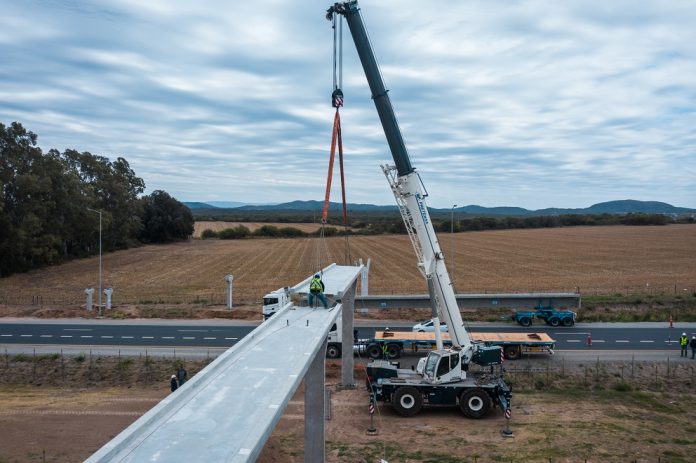 Caminos de las Sierras comenzó el montaje de la pasarela peatonal que está construyendo a la altura del kilómetro 1.110 de la Ruta C-45 Camino a Falda del Carmen, frente al barrio Cañitas.