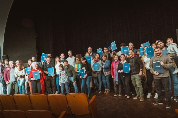 Este jueves se logró hacer esta nueva entrega de escrituras, que se suman a las más de 75 del año 2022 y hacen un total de casi 120 familias de barrio Portales del Sol.