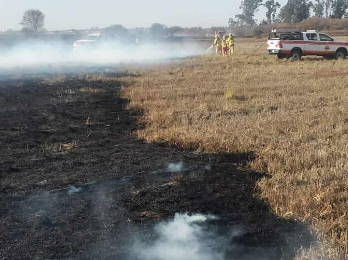 Sucedió en horas de la tarde del lunes en la intersección de la Ruta 5 y C-45. Trabajaron tres dotaciones de bomberos voluntarios. Se recuerda que se registra un peligro de incendio alto.