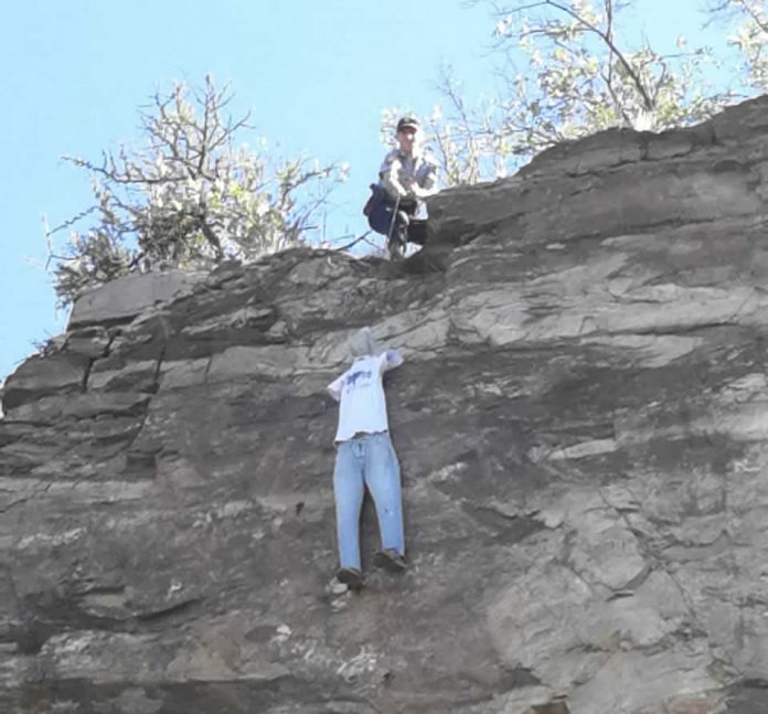 Redacción Alta Gracia– La policía fue alertada sobre una supuesta persona que se habría colgado en la zona de las canteras camino a La Paisanita. Al llegar al lugar, vieron que se trataba de un muñeco. Un hecho fue repudiado a través de las redes.