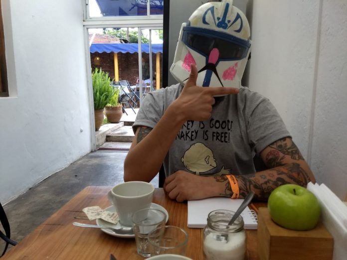 Prefiere mantener el anonimato detrás de un máscara intervenida que casualmente encontró en Córdoba en 2014. Estudió para Ilustrador y Diseñador Gráfico y el medio descubrió un estilo propio que le permitió vivir de lo que hace. En la actualidad, vive de las ferias, las ventas en su tienda nube y las Comic Con. Evalúa dedicarse al tatuaje también.Sus dibujos, incómodos por momentos, tomaron escena pública y junto con remeras y tazas con sus diseños.