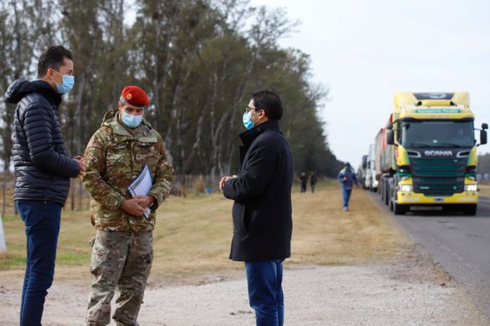 Los funcionarios visitaron la localidad de General Roca, en el sureste provincial, donde se desplegó un control al ingreso de la ruta 9 sur. «Tenemos 11 puestos de control en el territorio provincial, como en ruta 9 norte, en la ruta 19, en la ruta 8, en la intersección de la ruta 35 y en la 148. Estos son algunos de los principales puntos del tránsito vehicular pasante a nuestra provincia», afirmó Calvo.