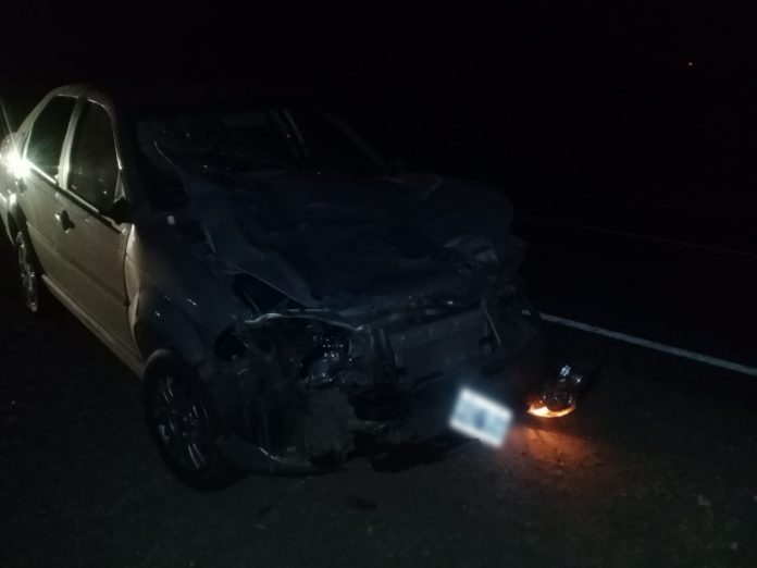 El conductor fue identificado como un hombre de 25 años. El animal quedó en la banquina de la ruta, mientras que el vehículo tuvo daños. El conductor no resultó lesionado.