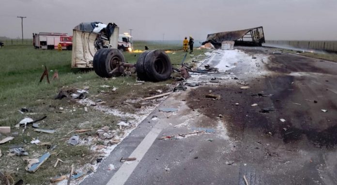 El hecho sucedió a las 2.10 en el kilómetro 671 cuando chocaron de frente dos camiones, un Fiat Hiway modelo 440 y un Chevrolet 814, en el cruce de Holmberg y a la altura de Moldes.
