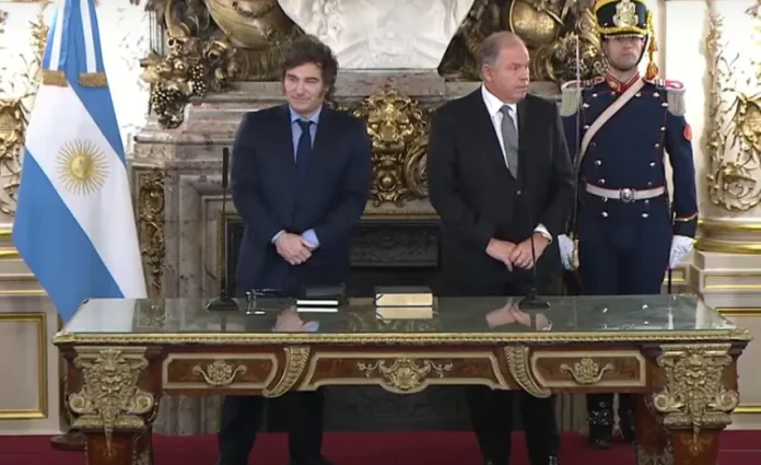 Tras la salida de la cordobesa Diana Mondino, asumió el nuevo ministro de la cartera de Relaciones Exteriores y Culto. En un breve acto, el ex embajador en los Estados Unidos juró por «Dios, la Patria y sobre la Torá». Es la primera vez que en esta clase de ceremonias se realiza una alusión al libro sagrado de la religión judía.