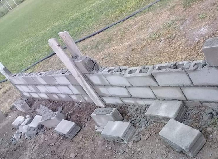 Un grupo, o alguna persona desconsiderada del esfuerzo de los papás y mamás, llego a voltear una pared que se venia levantando en el predio ubicado sobre avenida Costanera. Estos actos se suman a los que semanas atrás cuando se robaron los inodoros, bidet y piletas de los baños del sector local, ubicado al norte del predio.