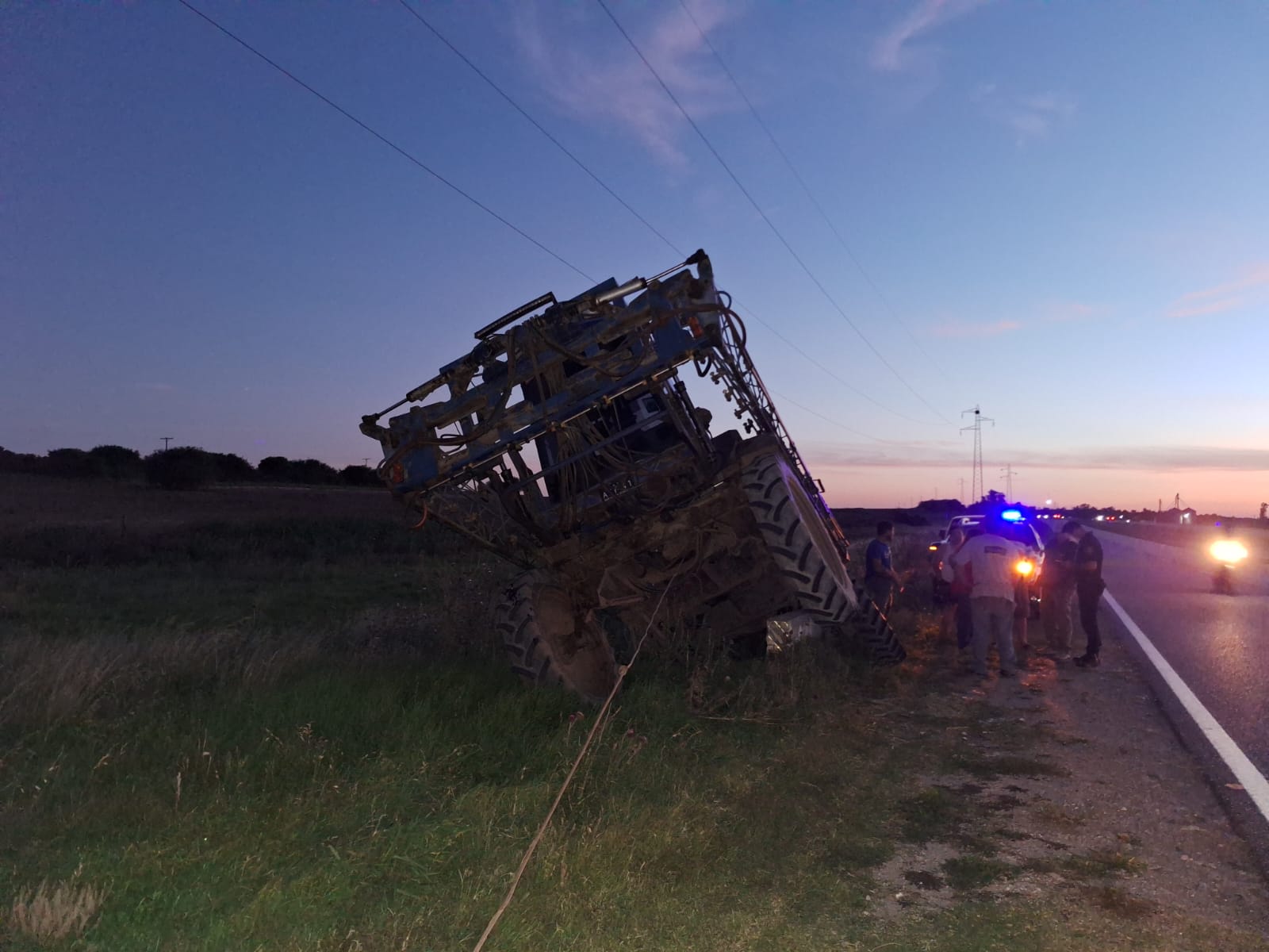 Personal policial intervino en un accidente de tránsito ocurrido en horas de la tarde-noche del martes donde se vio involucrada una maquinaria agrícola (fumigadora).