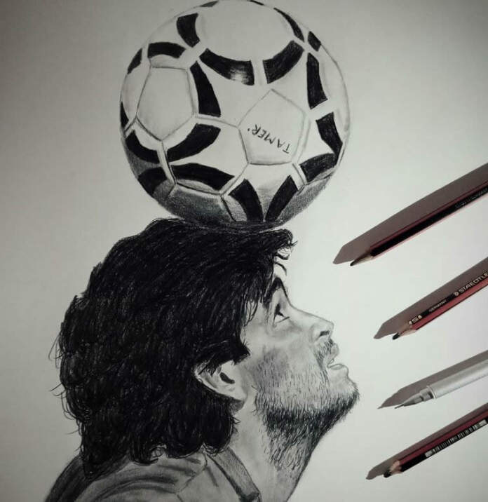 «En noviembre, cuando muere Diego, me inspiré en dibujarlo y busqué una foto no tradicional. Lo terminé tan sólo en tres horas, pero lo que más me llamó la atención es el mensaje que recibí vía redes de un tal Esteban Almirante con un bar de Maradona en Inglaterra llamado ‘La Mano de D10S'», señaló.