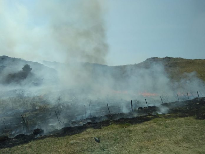 Según el parte policial, unas 80 hectáreas de sierras se están quemando en donde sólo hay pastizales, sin correr riesgo viviendas o personas del lugar.