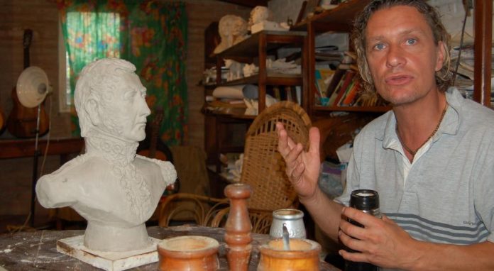 Por María Luz Cortez. Julio Incardona es un escultor con taller en Alta Gracia. El arte es el recurso para sus relatos sobre la historia. Sus figuras sobre personajes nacionales integran una muestra multimedia que recorre el país.