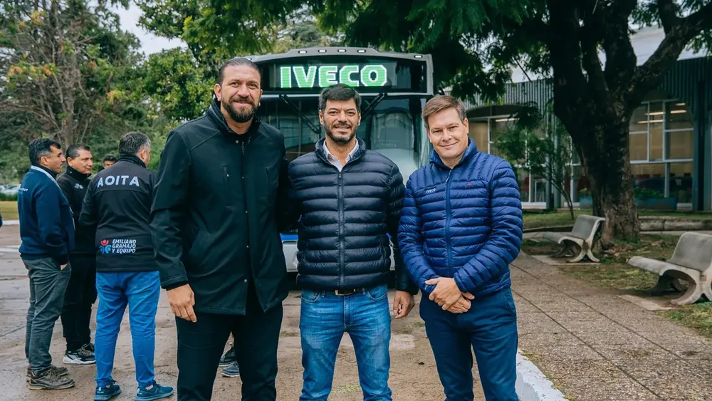 Los secretarios generales de Aoita y del Smata, Emiliano Gramajo y Maximiliano Ponce, visitaron la planta de la fábrica Iveco local y celebraron el primer colectivo a Gas Natural Comprimido (GNC).