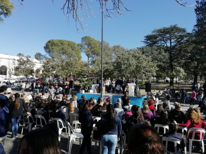 El acto se llevó a cabo sobre calle Lozada, entre la institución educativa y Plaza Solares, la mañana del 29 de junio.