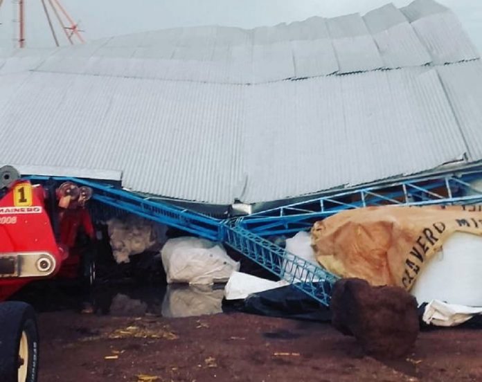 Además de tirar postes del tendido eléctrico, arrasar con árboles y causar la voladura de techos de chapa, las fuertes ráfagas de viento derrumbaron casi por completo algunas propiedades, entre ellas un galpón en la Estancia “Don Luis”, ubicada a unos 14 kilómetros de Sebastián Elcano.