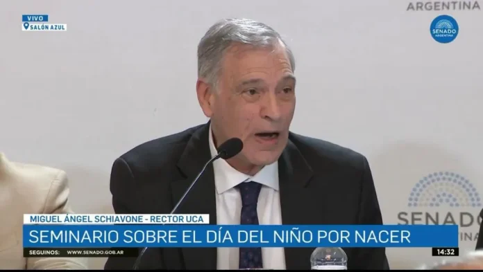 El rector en Universidad Católica Argentina Santa María de los Buenos Aires (UCA), Miguel Ángel Schiavone, fue invitado por La Libertad Avanza (LLA) a exponer en una comisión del Congreso en el marco del Día del Niño por Nacer, y se despachó con un insólito discurso contra la inserción laboral de las mujeres, entre otras cuestiones.