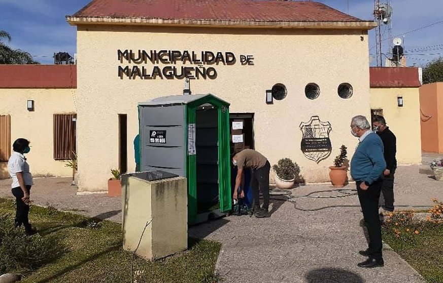 La municipalidad de Malagueño instaló cabinas sanitizantes (o comúnmente llamados también túneles de desinfección) en el ingreso a los edificios estatales, a fin de contribuir con las medidas de prevención en relación a la crisis sanitaria.