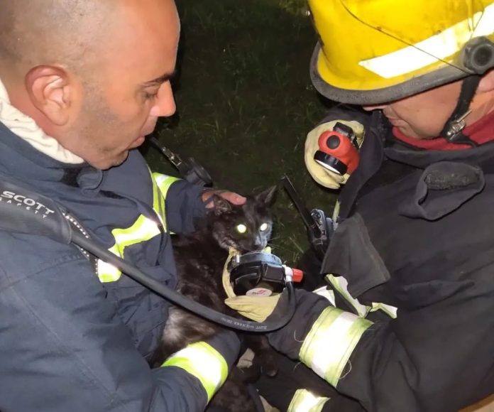 «Durante la intervención del pasado viernes, dónde se acudió a un incendio urbano en el cual tomo fuego una habitación, mientras una dotación sofocaba las llamas encontraron en el interior de la vivienda un gato que se veía afectado por el humo y los gases. El personal lo extrajo del lugar y comenzó a entregarle aire de su equipo de respiración autónoma para que el mismo se recupere», contaron a través de sus redes sociales.