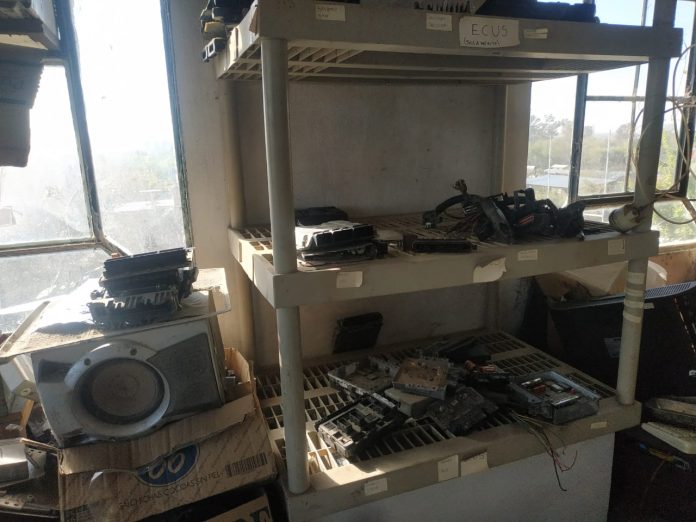 En el lugar se secuestró gran cantidad de elemento de electrónica vehicular (E.C.U.), tres armas de fuego, cartuchos, tres celulares y tres CPU.