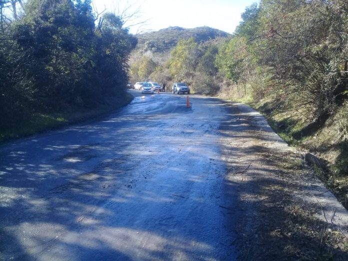 Está cortada media calzada en ese tramo de la ruta. Personal policial está realizando tránsito para extremar las precauciones se está utilizando un solo carril y aún permanece congelada parte de la carpeta asfáltica.