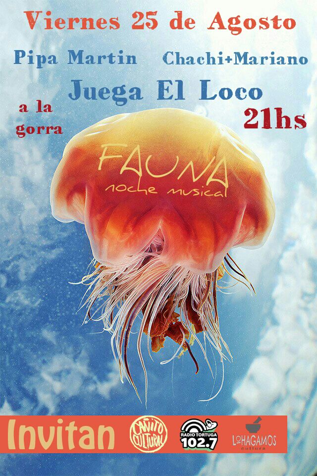 Comunicado de prensa- El Viernes 25 de Agosto desde las 21 horas, «Fauna: Noche Musical» desplegará artistas locales y de Capital Federal en el Cañito al 100, sede de el Cañito Cultural.
