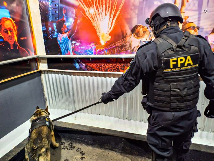 La Fuerza Policial Antinarcotráfico realizó un operativo en el evento, trabajando junto a canes detectores de narcóticos.