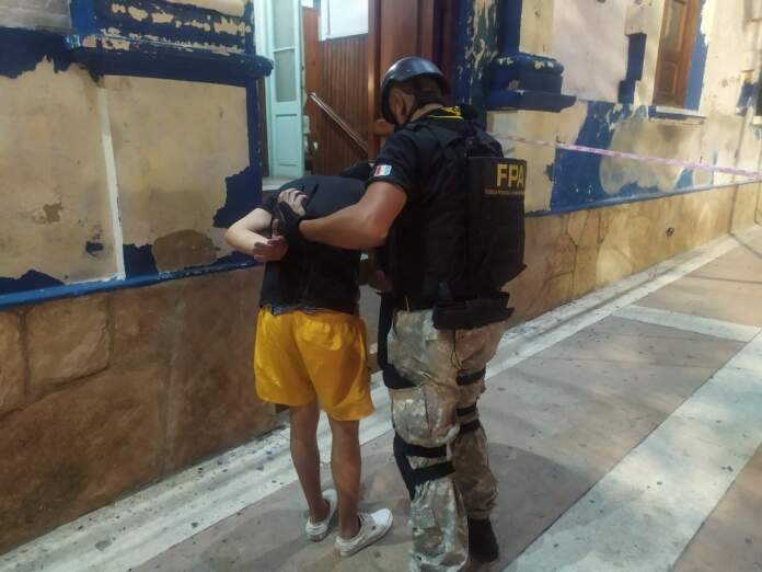 En avenida Los Aromos al 100, de la localidad homónima, investigadores de la FPA observaron a dos sujetos corriendo raudamente en actitud sospechosa. Tras darles la voz de alto, los mismos emprendieron la fuga siendo rápidamente detenidos.