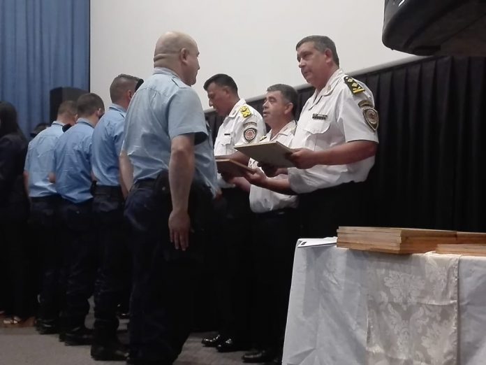 En las instalaciones de una de las salas de cine de la ciudad, se llevó adelante el acto de fin de año de la policía local con homenajes y reconocimientos a los uniformados de las distintos destacamentos.