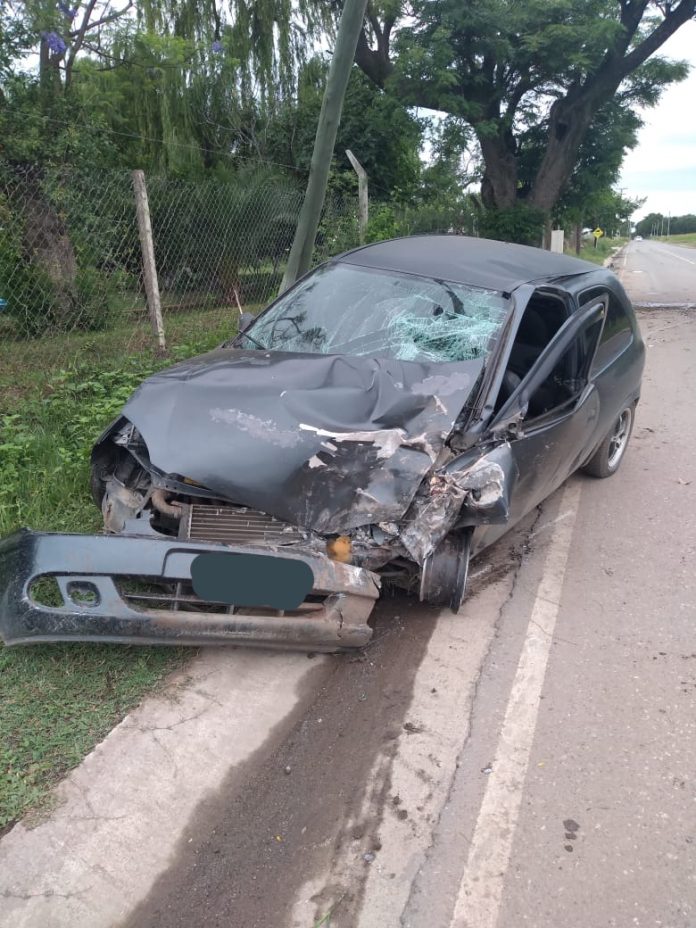 El automóvil impactó contra un poste de tendido eléctrico y un árbol, resultando el conductor, con algunas heridas en los brazos producto de los vidrios rotos, es trasladado a un nosocomio para su atención.