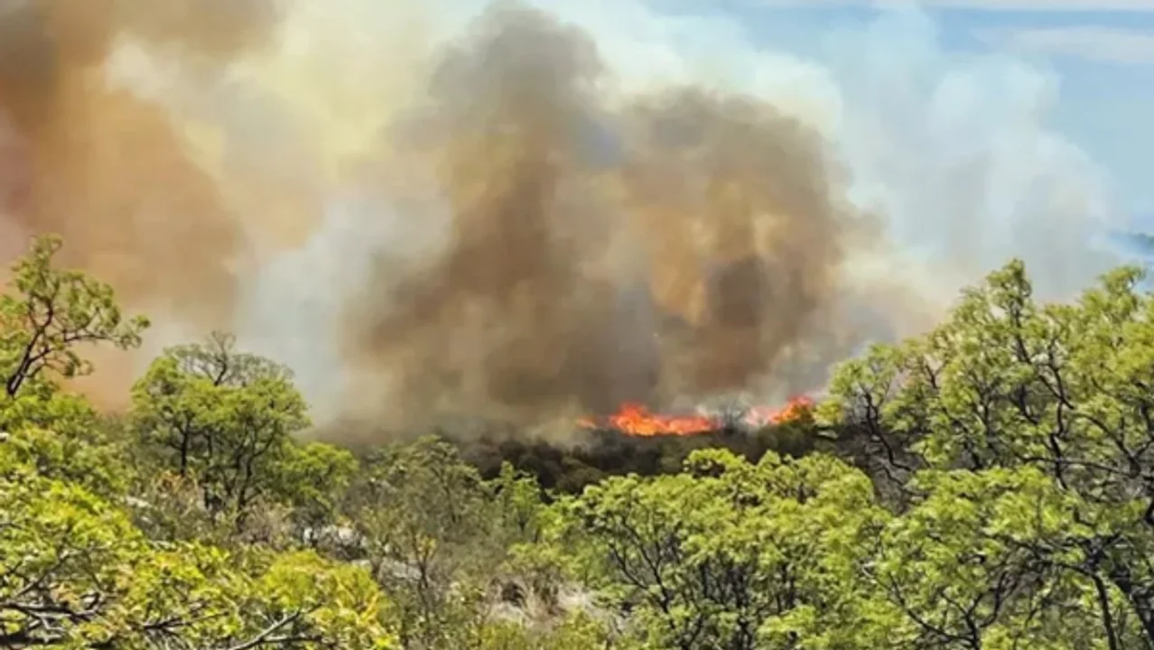 El foco avanza en dirección al Parque Nacional Traslasierra en una jornada con más de treinta grados de calor este miércoles.