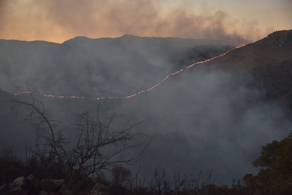 Sobre el frente de fuego que se desplazó por Huerta Grande-La Falda-Villa Giardino-La Cumbre, el Ministerio de Seguridad informó durante la madrugada se trabajó “en la zona de Pueblo Nativo. Presenta actividad en una de las laderas de la montaña”.