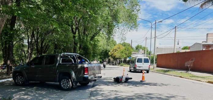 Este domingo personal policial intervino en un accidente de tránsito ocurrido en calle Presidente Juan Domingo Perón N° 1535, de barrio Liniers, donde se vieron involucradas una motocicleta Honda Titan y una camioneta Volkswagen Amarok.