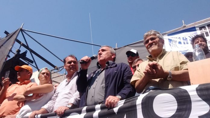 «Ayer estuve en Rosario en una movilización similar a esta, contra el tarifazo de los servicios públicos. Acá estamos en recesión permanente. Cada día hay que monitorear la situación social y si esta situación social termina con desbordes y con muerte habrá que revisar la fecha del paro del día 25» arrancó Schmid en su discurso en el palco central.