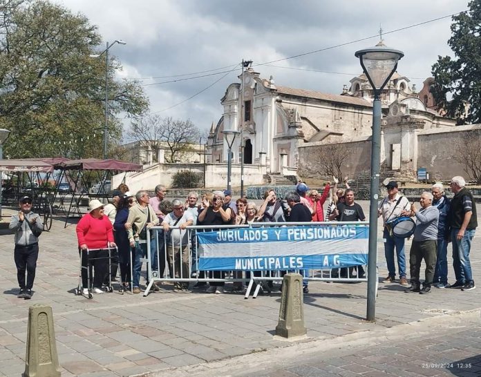 Este miércoles una veintena de jubilados y pensionados municipales se concentraron en Plaza Solares, frente al edificio de la Municipalidad de Alta Gracia, para exigir su participación en las negociaciones salariales de los empleados municipales.