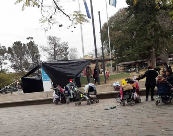 Redacción Alta Gracia– El lunes hicieron una olla popular y corte de la Ruta 5. Al no tener respuestas, este miércoles instalaron un acampe frente al municipio.