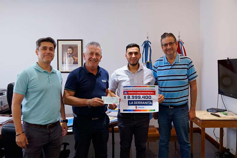 El Gobierno de Córdoba, a través del Ministerio de Infraestructura y Servicios Públicos, hizo entrega de fondos para las obras de gas natural por red a un establecimiento educativo de La Serranita. Además, recibieron este apoyo escuelas de La Palestina, Agua de Oro y Km 658.