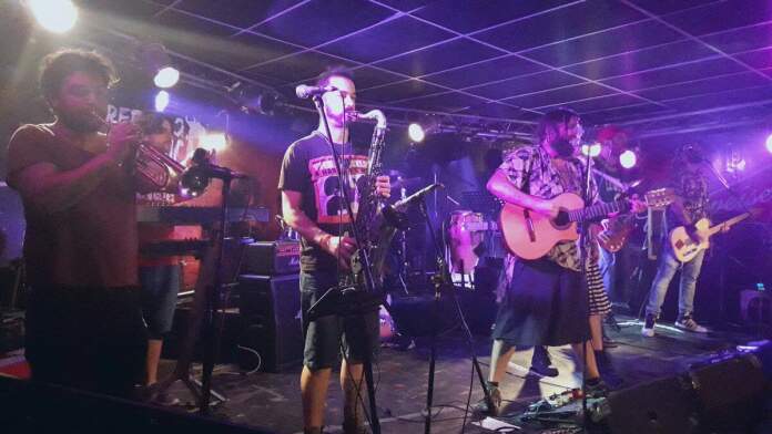 Al mero efecto de tratar de trazar la línea cronológica del show, se dirá que el grupo formado en Sao Paulo presentó varios temas de su disco “Soltasbruxa” y cautivó al público desde el primer acorde. Con un percusionista erigido como base musical y altísimos puntos fuertes en su guitarristas-frontman y una cantante descomunal, “Francisco el Hombre” cumplió con los muchos seguidores que en plena semana laboral fueron al Refugio, y deslumbró a los pocos que nunca los habían visto en vivo. Dos textos breves pintan de cuerpo entero la filosofía de la banda: el estribillo “Somos humanos, no máquinas” en uno de los temas,  y el “Fora Temer” coreado por el público y sostenido por los músicos en el final de una presentación formidable, en la que el cuerpo pidió bailar.