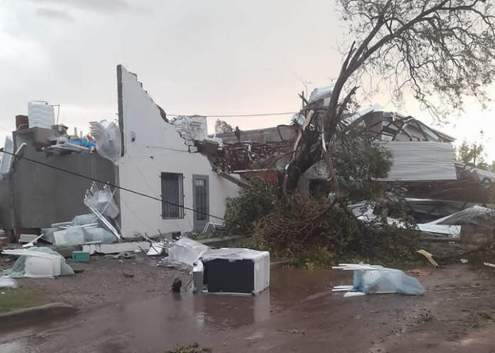 En esta zona se registró en horas de la tarde una cola de tornado ocasionando daños en algunas viviendas, tendido eléctrico y arboleda.
