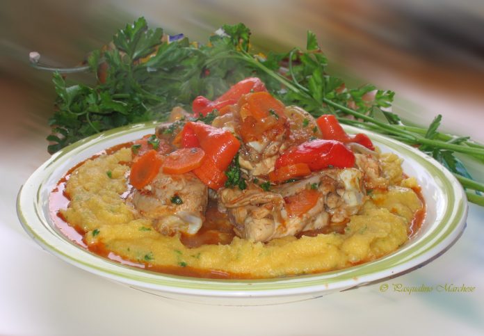 Por Pasqualinonet- Una forma práctica para determinar la cantidad de polenta para cada comensal es emplear un cucharón mediano lleno por porción. La cantidad de pollo varía según se quiera comer polenta con pollo o pollo con polenta.