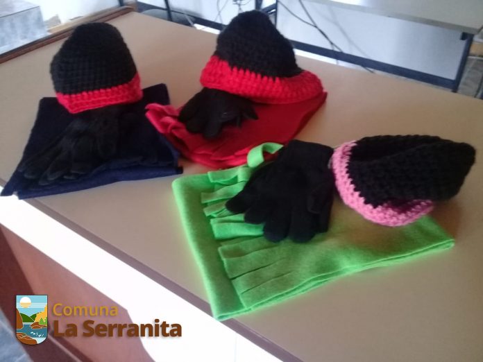 Junto con los módulos, la Comuna aporta un kit de invierno, que consta de gorro tejido, bufanda y guantes para cada estudiante que asiste a la escuela.