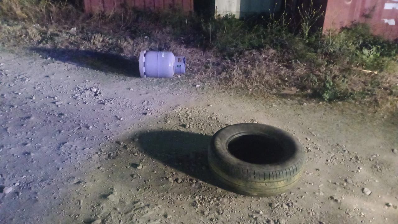 No obstante, mientras intentan dar con los delincuentes, encontraron abandonados una cubierta de auto y una garrafa de 10 kilos.